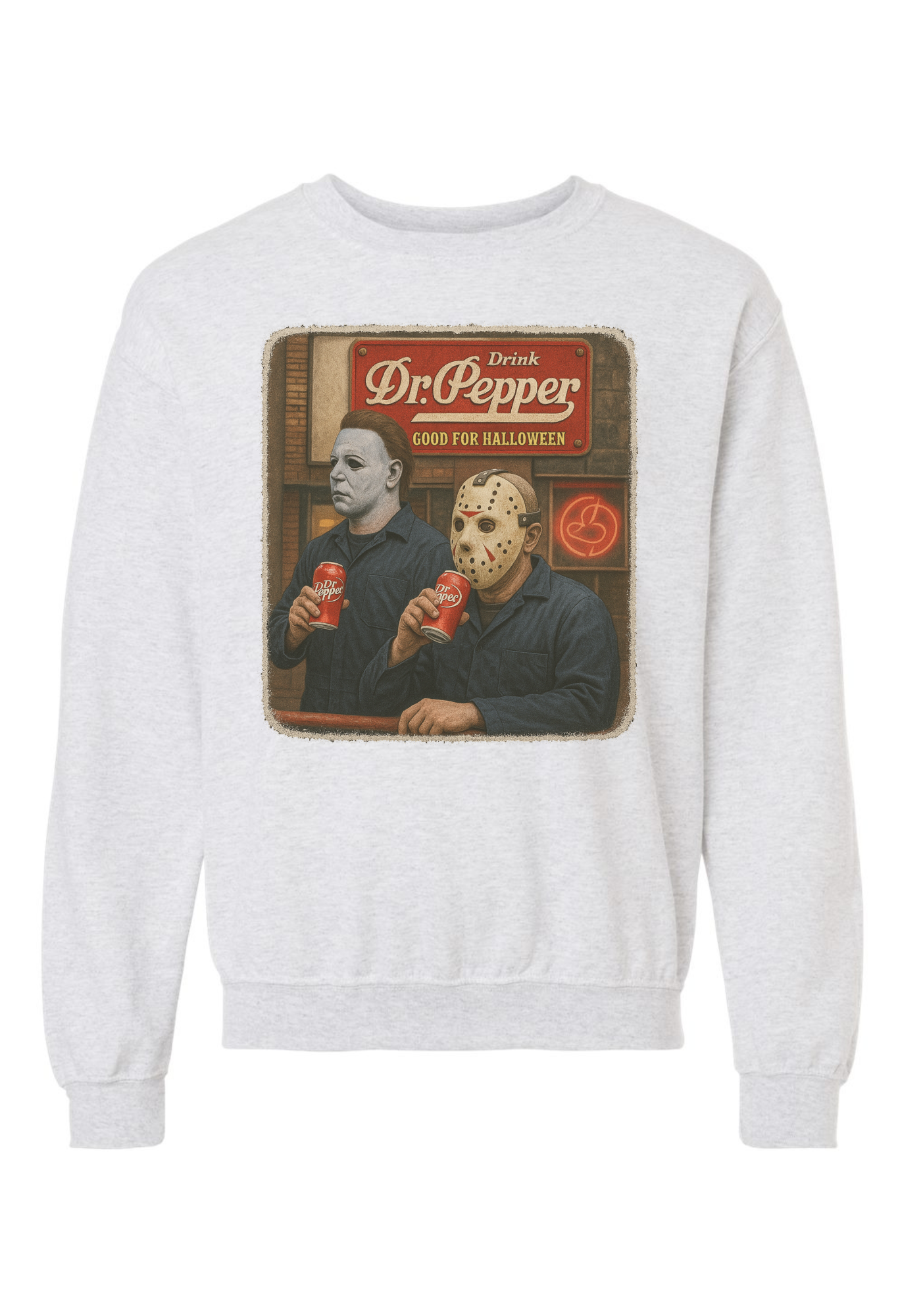 Gildan 50/50 Cotton/Poly Blend Crewneck Sweatshirt in the color Ash. Image is sublimated on.